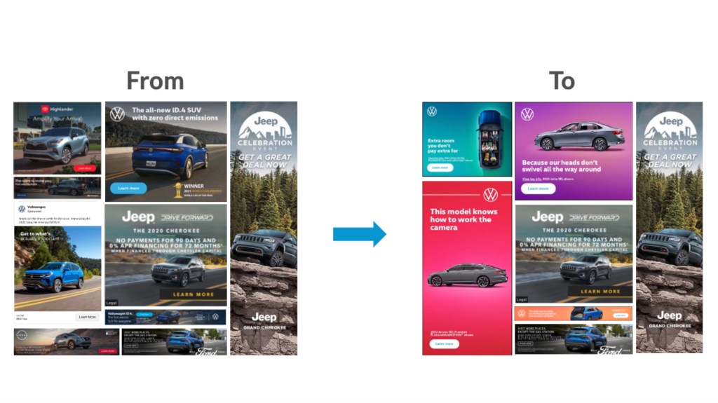 In the auto category, most client and agency attention is given to video ads and tentpole sponsorships, but what about the myriad of social and digital assets garnering millions (even billions) of impressions per year? I spearheaded a joint strategy/creative effort to revamp Volkswagen’s programmatic assets—breaking free from the category “sea of sameness” and driving a massive improvement in performance.